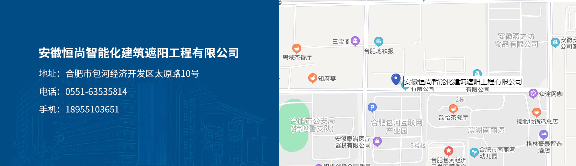 安徽恒尚智能化建筑遮陽工程有限公司是生產高品質窗簾產品的專業公司。本公司擁有廠房面積5000余平方米,是安徽省先進的電動窗簾生產廠家,公司擁有大型先進的窗簾制作設備和專業的生產和安裝技術人員,并有著嚴密的管理和質量體系,有效地保持了產品質量。本公司具有豐富的建筑遮陽系統的應用技術和建筑遮陽工程的施工經驗,可持續(xù)為全國用戶提供先進、專業的遮陽節(jié)能產品,可為建筑設計院和裝飾設計工程公司提供專業的建筑遮...
